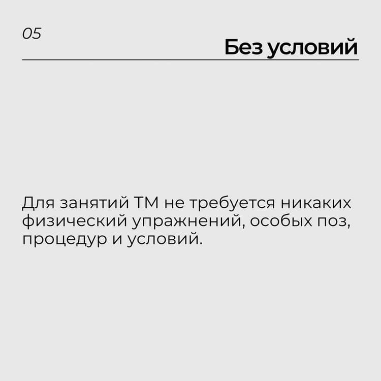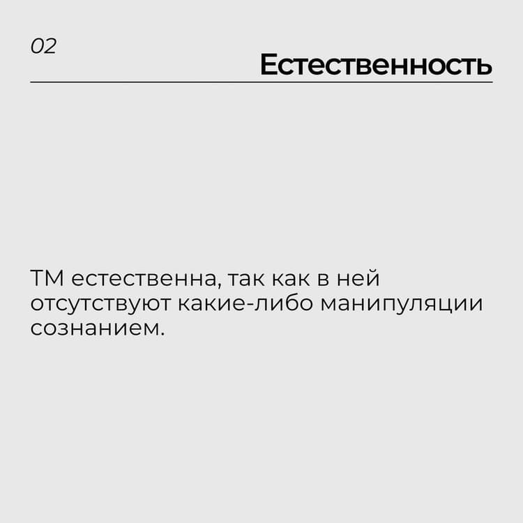 По мере практики ТМ я становлюсь всё спокойнее и увереннее, а также могу сказать, что ТМ положительно влияет не только на рабочую сферу деятельности, но и на все аспекты моеи жизни.