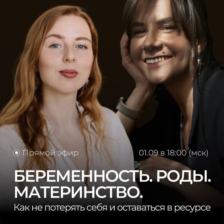 В это воскресенье, 1 сентября, в 18:00 (мск) на нашем канале пройдет совместный прямой эфир на тему: «Беременность. Роды. Материнство. Как сохранить себя и оставаться в ресурсе».