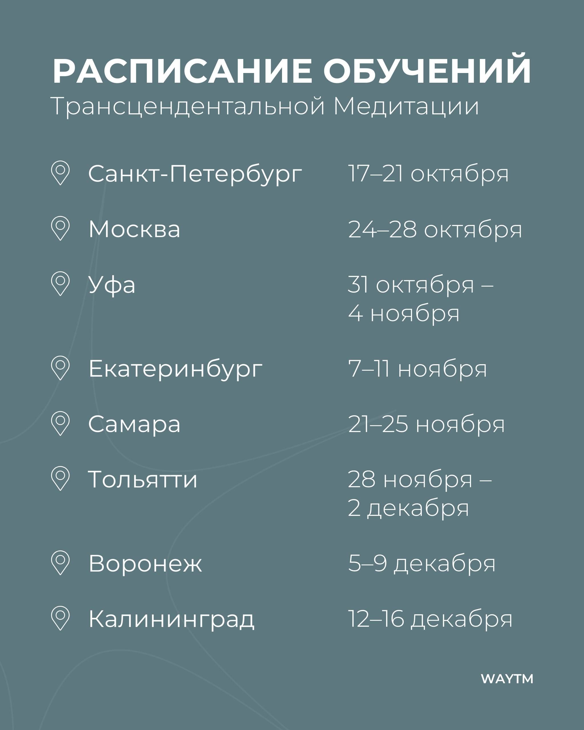 Расписание обучений Трансцендентальной Медитации на второе полугодие 2025 года