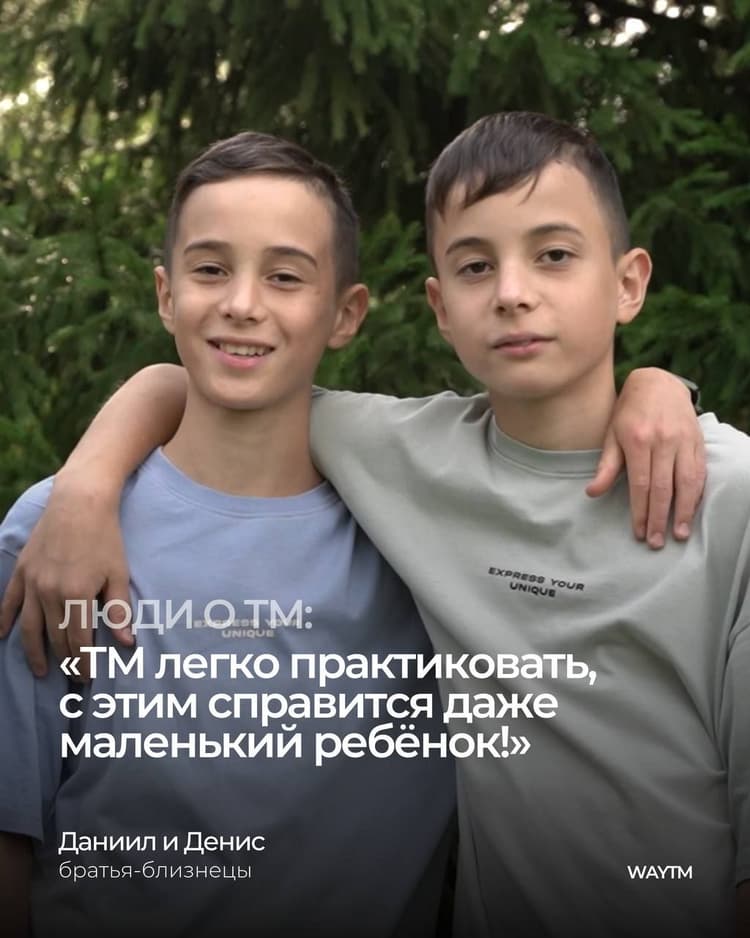 Братья-близнецы Даниил и Денис практикуют Трансцендентальную Медитацию уже 5 лет. Мальчики отмечают, что практика им помогает сосредоточиться перед контрольными, сбросить усталость после тренировок, найти новые интересные решения.