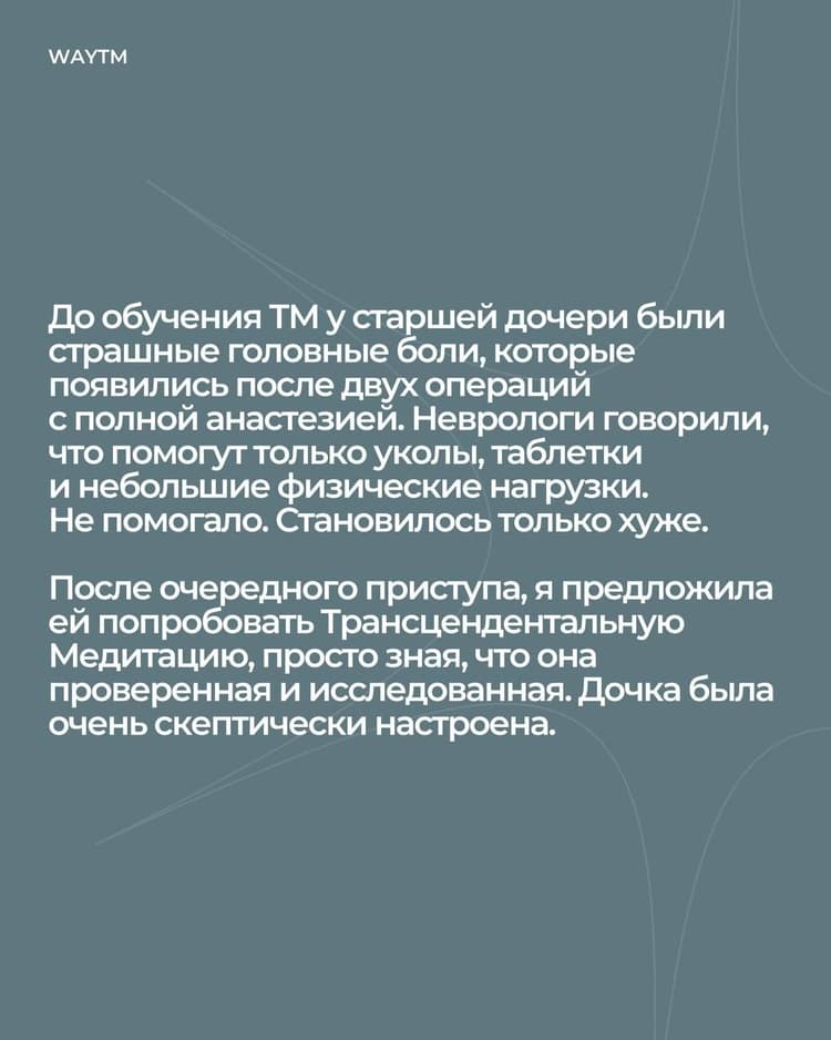 📦 В карусели делимся отзывом Ольги о том, какие результаты приносит техника ТМ её детям. Сама Ольга практикует Трансцендентальную Медитацию с 2021 года.