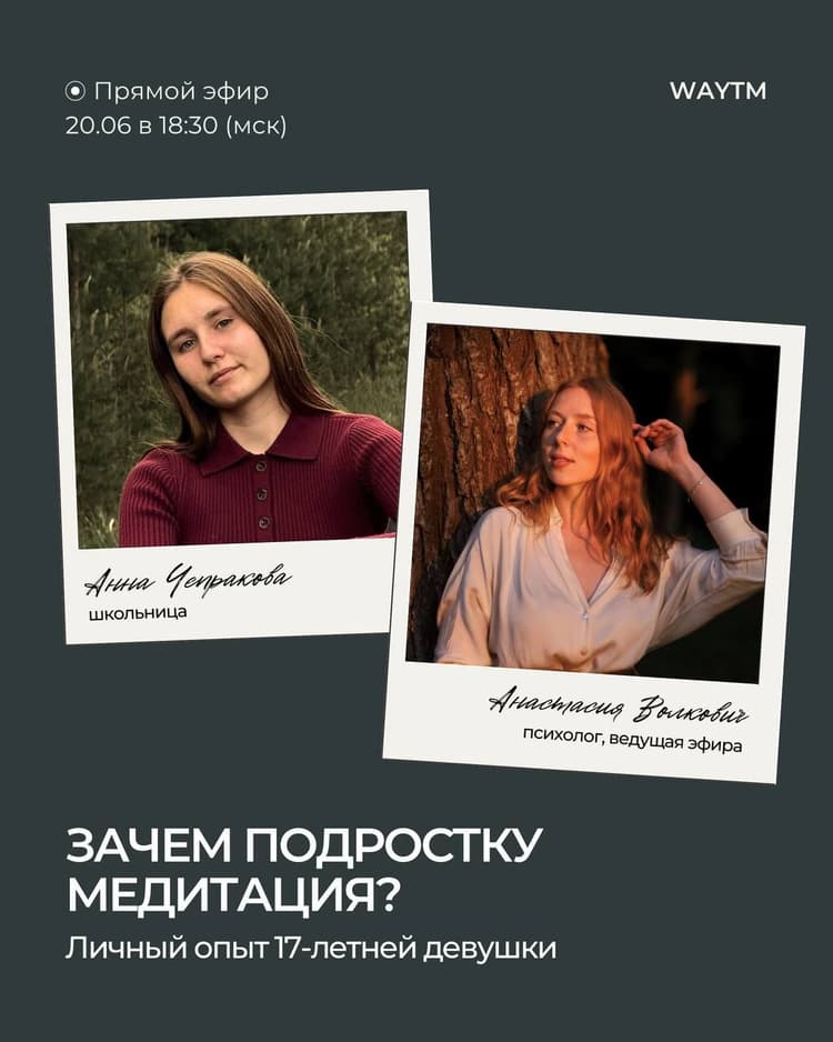 🔔 До начала прямого эфира «Зачем подростку медитация? Личный опыт 17-летней девушки» остался 1 час!