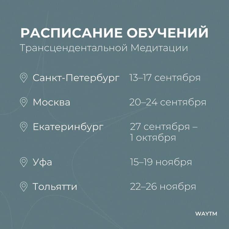 Многие люди, проходя курс обучения ТМ, находят для себя не только инструмент для снижения стресса в своей жизни, но и близких по духу людей. Кто-то обретает новых друзей, кто-то посещает групповые занятия для достижения более глубокого эффекта от практики, а кто-то решает принимать участие в организации обучений в своем городе.