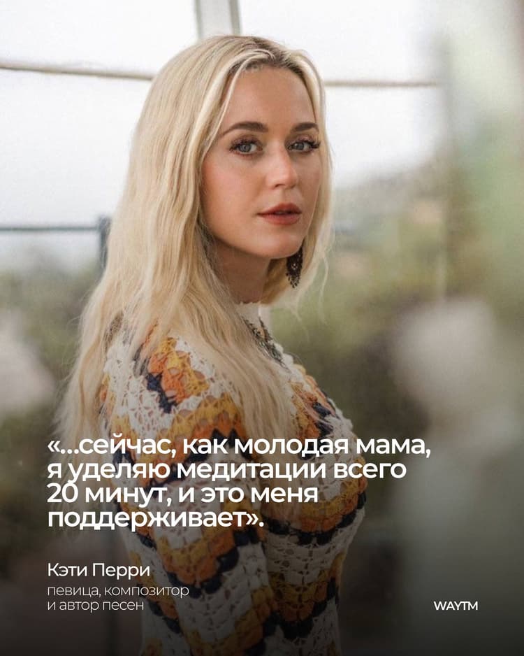 Кэти Перри одна из мировых звёзд, кто регулярно в своих интервью рассказывает о Трансцендентальной Медитации как инструменте, помогающем ей в активной жизни.