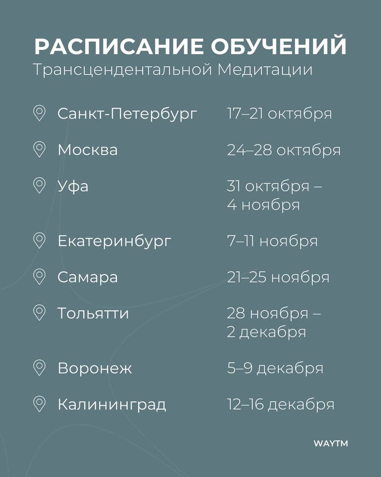 Расписание обучений Трансцендентальной Медитации на второе полугодие 2025 года